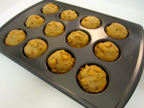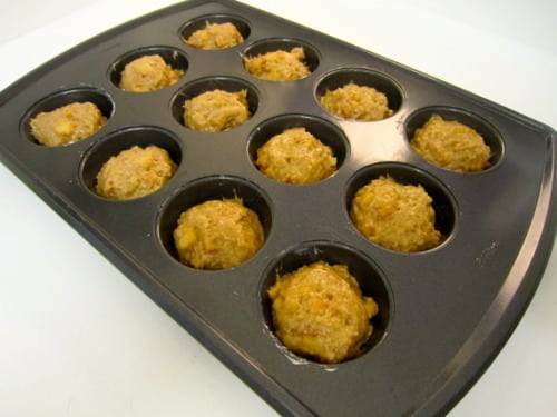 Line a 12-cup standard muffin tin with paper liners; set aside. (If you don’t want to use paper liners, you could coat a muffin pan with cooking spray instead.)