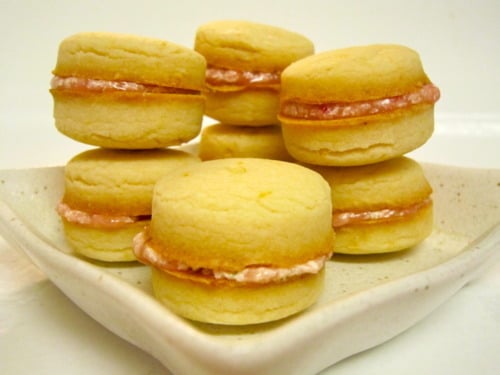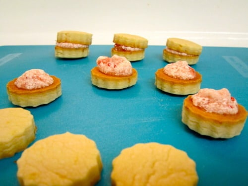 Mini Strawberry Filled Lemon Sandwich Cookies (adapted from Evil Shenanigans):