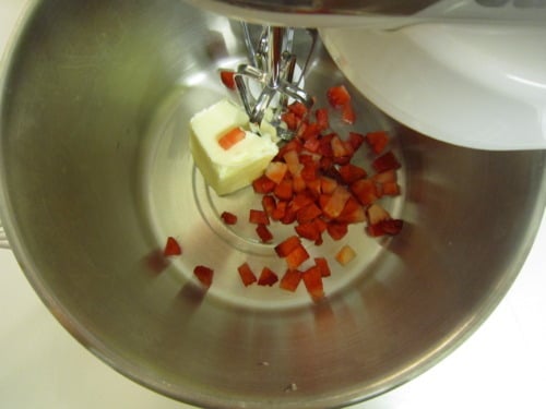 In the bowl of an electric mixer fitted with the paddle attachment, beat butter and strawberries on medium-high until only small pieces of berries remain, about 3-4 minutes.