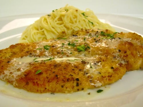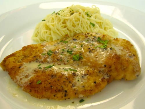 But when I saw this recipe on Pioneer Woman, I couldn’t wait to try it. It’s a simple weekday dinner recipe that takes less than 30 minutes. It’s as simple as this: the chicken breasts are dredged in flour and then fried in a bit of butter and olive oil. Then they’re topped off with this tangy, lemony sauce made with simple ingredients like wine, chicken broth, freshly squeezed lemon juice, and heavy cream.