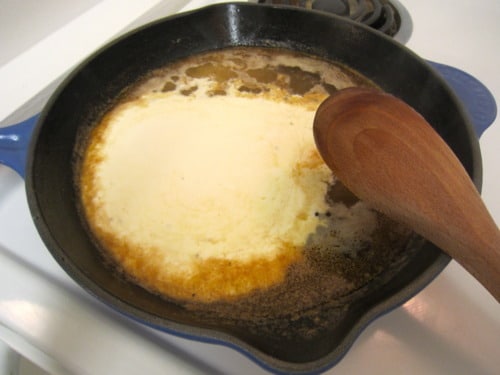 Add the wine, chicken broth and lemon juice to the skillet. Bring to a boil; reduce heat and simmer until reduced by half.