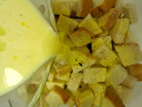 - 1/2 loaf French bread, cut into large cubes (I used leftover sourdough bread)