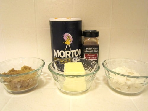To make the streusel topping, combine the flour, brown sugar, cinnamon and salt in a medium bowl.