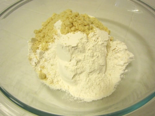 In a large bowl, combine the flour and almond meal.