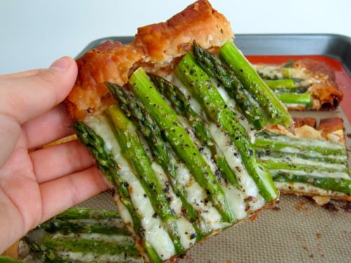 To be honest, I was actually planning on posting about Brown Eyed Baker’s Lofthouse Style Frosted Sugar Cookies, and I even bought green sugar sprinkles but once I read through the recipe, I knew I wouldn’t be able to pull it off in time. I’m a person with no patience, and these cookies require a little more time than I had anticipated since the dough had to be chilled in the refrigerator for at least 2 hours. And since I’ve started using natural light in most of my posts, I just didn’t want to fight the clock to the 7 o’clock sunset so I chose to make this easy, yet gorgeous looking asparagus and gruyere tart. It’s no corned beef and cabbage but it’s green so that counts for something, right?