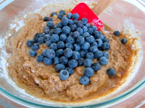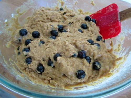 Pour mixture over dry ingredients and stir using a rubber spatula just until moist.
