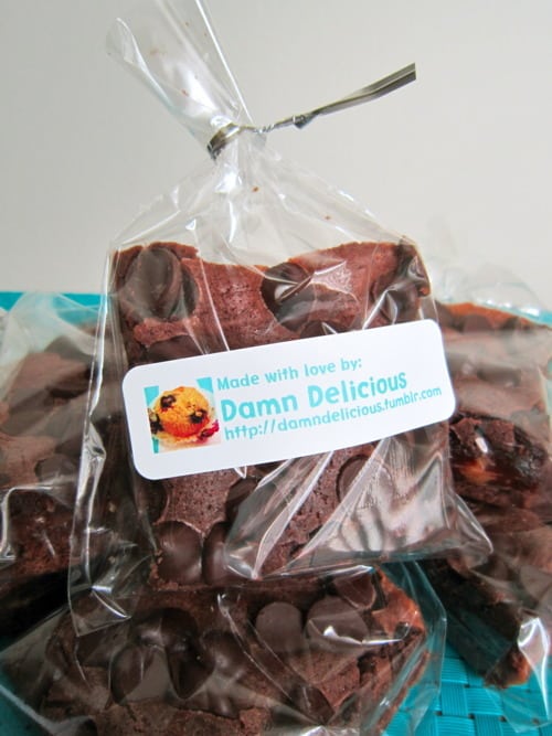 Once they were done cooling, I packaged the brownies in individual bags, and I just had to showcase my new stickers I got for the LA Food Blogger Bake Sale. I know, I’m such a nerd.