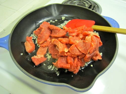 Add the steak and cook, turning occasionally, until cooked through, about 3-4 minutes.