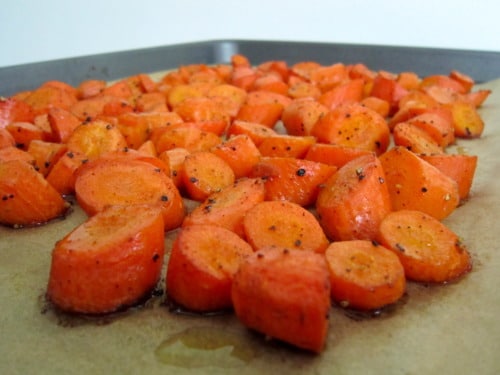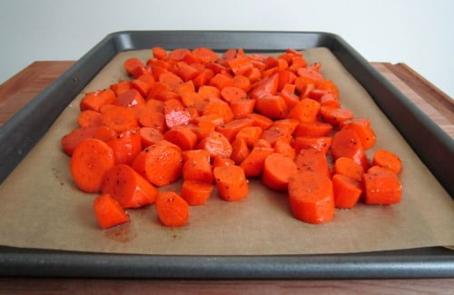 Place into the oven and roast for 25 minutes, or until the carrots are cooked through and the edges have crisped.