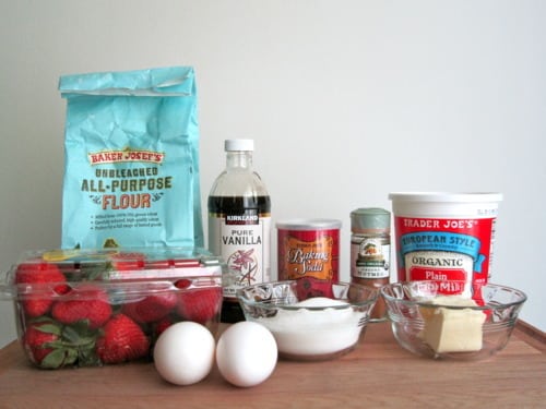 So if you come across some insanely cheap strawberries like I did, you have tons of things to make, starting with this jam. After you make the jam, you have to make these strawberry yogurt muffins. Why? Cause then you get to smear the muffin tops with this awesome jam.