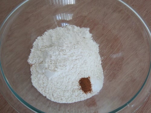 In a large bowl, combine the flour, nutmeg and baking soda.