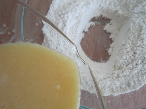 Pour mixture over dry ingredients and stir using a rubber spatula just until moist.