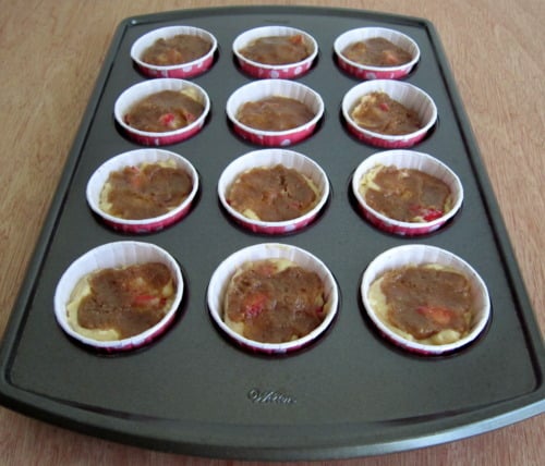 Line a 12-cup standard muffin tin with paper liners; set aside. (If you don’t want to use paper liners, you could coat a muffin pan with cooking spray instead.)