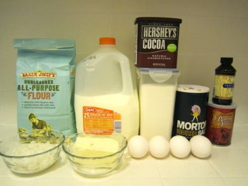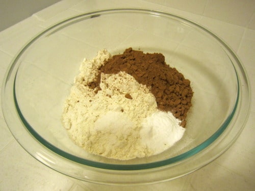 In a large bowl, combine the flour, cocoa powder, baking powder and salt.