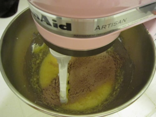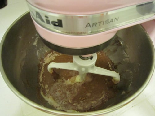 With the mixer on low speed, add the dry ingredients and the milk alternately in 3 parts, beginning and ending with the dry ingredients, beating just until incorporated.