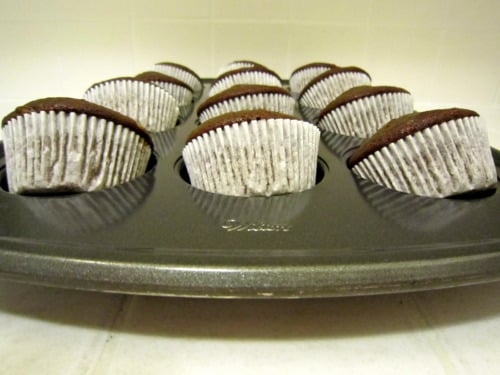 Tilt each cupcake in the muffin pan, allowing it to sit at an angle for 10 minutes before transferring to a wire rack to cool completely before frosting.