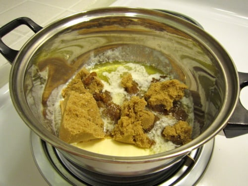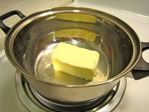 To make the frosting, melt the butter in a saucepan over medium heat.