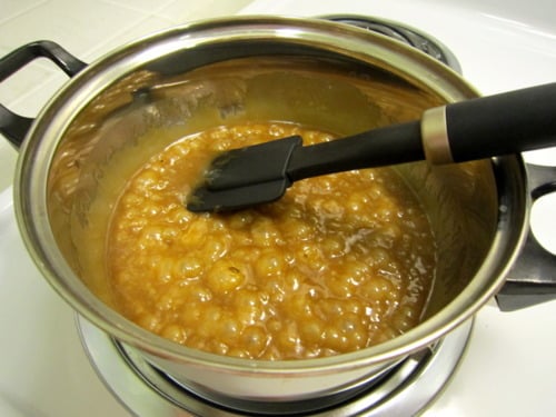 Bring to a boil, stirring constantly; cook over low heat until the sugar has dissolved, about 2 minutes.