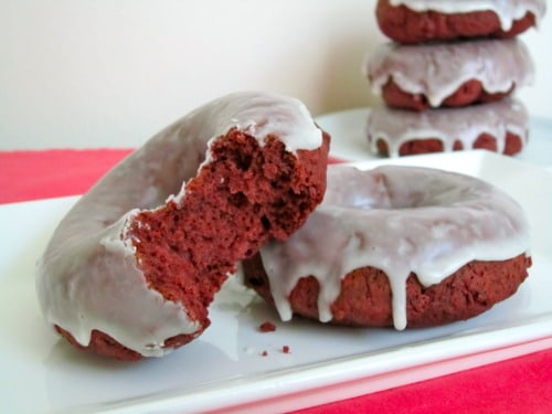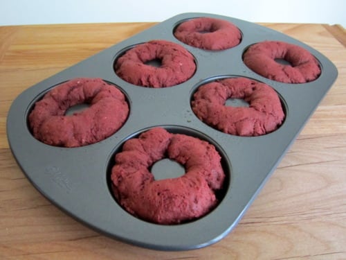 I have two donut pans, a regular-sized one and another one for mini donuts. But for some reason, I keep forgetting that I have them. I’m so obsessed with muffins that these poor donut pans aren’t being used. Well folks, that’s all about to change. After making these red velvet donuts, I’m sure I’ll be making donuts at least once a week.