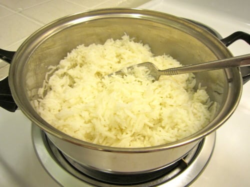 While the chicken is cooking for the last 20 minutes, cook the basmati rice according to package instructions.