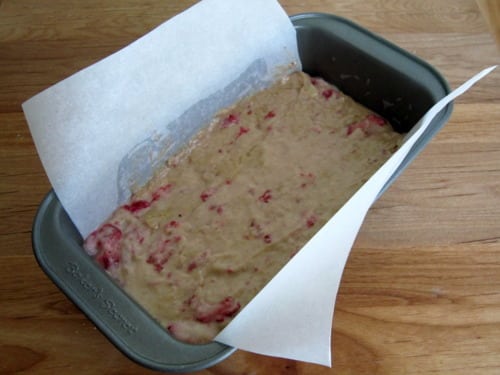 Pour the batter into the prepared loaf pan; use a rubber spatula to smooth the top.