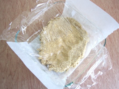 The batter will be sticky so I used saran wrap to spread the bottom layer.
