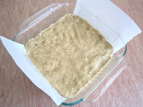 Let cool slightly before cutting into bars.