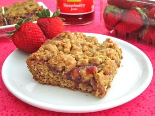 Anyway, when all the photos were taken and the time had finally come to dive into these babies, I was over the moon. I loved how crumbly they were along with that sweet strawberry jam center. I especially liked it when they were chilled. The only thing that did bother me though was that I had to use store-bought, Smuckers Strawberry Jam. I know, shameful. But I didn’t make that Strawberry Balsamic Jam until after I had made these. But that just gives me an excuse to make these again with that homemade jam. I mean these bars were palatable with the shameful jam so could you imagine how much better it would be with homemade jam?