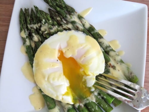 Poached Egg on Roasted Asparagus with Hollandaise (inspired by Simply Delicious):