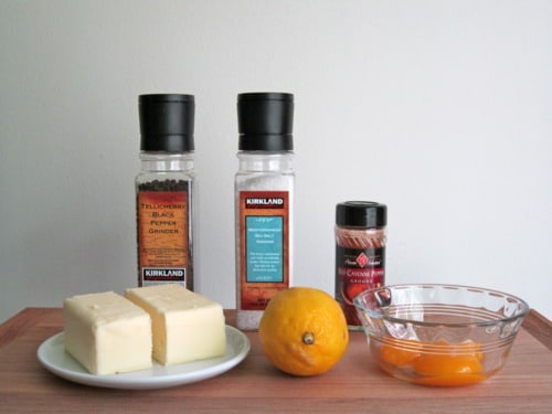To make the hollandaise, combine the egg yolks, lemon juice, cayenne and salt in a blender until pale yellow in color, about 30-60 seconds.