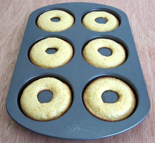 Place into oven and bake for 8-10 minutes, or until the donuts are slightly browned and spring back when touched.