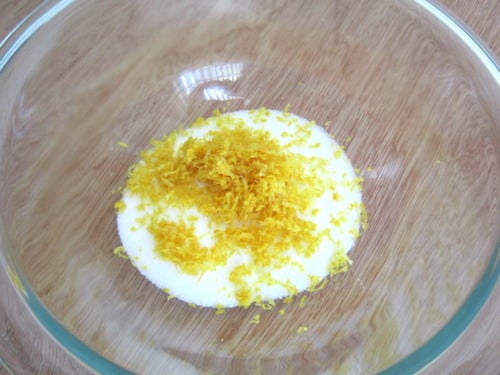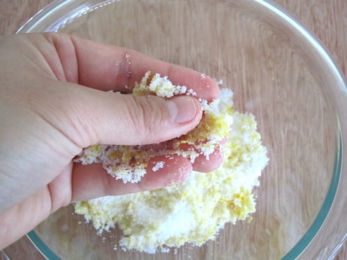 Rub the sugar and lemon zest together with your fingers, releasing the oils from the lemon zest into the sugar, about 1 minute.