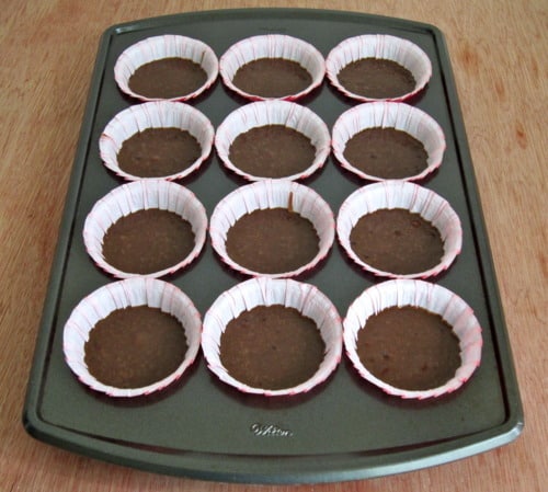 Line a 12-cup standard muffin tin with paper liners; set aside. (If you don’t want to use paper liners, you could coat a muffin pan with cooking spray instead.)