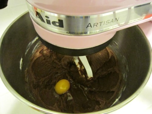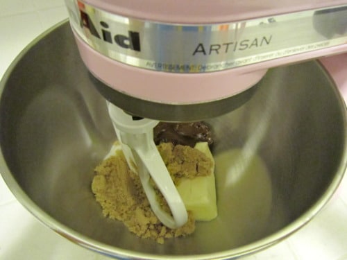 In the bowl of an electric mixer fitted with the paddle attachment, beat butter, Nutella and sugars on medium-high until light and fluffy, about 2-3 minutes.