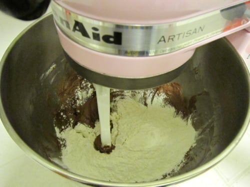 Gradually add flour mixture to the sugar mixture at low speed, beating just until incorporated.