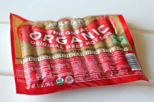Then grab your favorite kind of hot dogs. I snagged these amazing organic ones from Trader Joe’s.