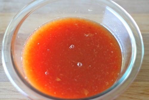 Let’s first start by making the sweet and sour sauce by combining some red wine vinegar, pineapple juice or orange juice, sugar, ketchup, cornstarch and salt. Now let’s take a swim in this.