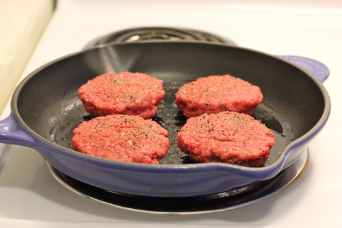 Before throwing these guys on the skillet, be sure to season both sides with salt and pepper. We’ll cook them for about 3-4 minutes on each side for a medium rare. The secret here is to flip these guys only once.