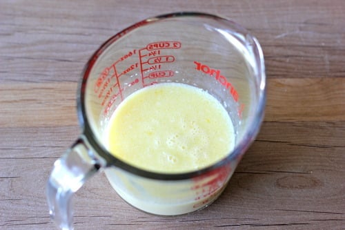 Then the wet – milk, butter, vinegar and egg.