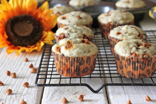 Now for this week’s installment of #MuffinMonday, I bring you banana muffins. But not just any kind of banana muffins. Sure, they’re wonderfully moist and fluffy with just a hint of sweetness but I’ve also added cinnamon chips. (If you’ve never had cinnamon chips, I highly recommend getting some soon because these are a freaking god send.) The cinnamon chips stay fully intact during the baking process but they melt into cinnamon goodness with every bite. They’re the perfect breakfast muffins, letting you indulge just a tiny bit with your morning cup of coffee.