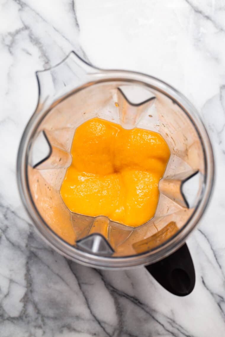 I couldn’t find frozen peaches any so I used frozen mangos instead – delicious!