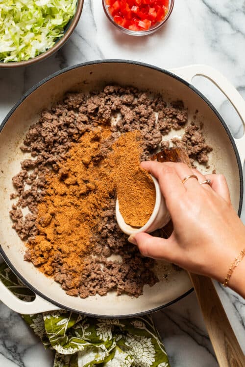 Many brands love to pack in the salt so always opt for unsalted or a lower-sodium taco seasoning variety. Homemade taco seasoning is even better!