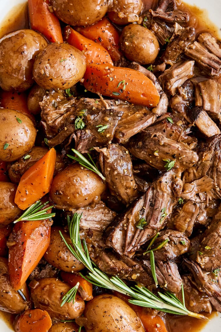 - Fall apart beef. No more dry pot roast here. We’re talking moist, flavorful, fall part, melt-in-your-mouth shredded beef. Not to mention, a gravy you’ll want to pour on all your buttery mashed potatoes and crusty bread, of course.