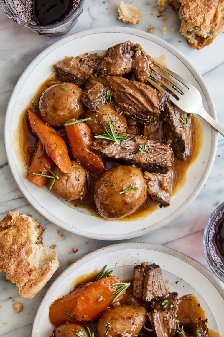 Pot roast is very freezer-friendly! Freeze in individual servings, thawing overnight and reheating on the stovetop or low oven to avoid overcooking or drying out the meat.