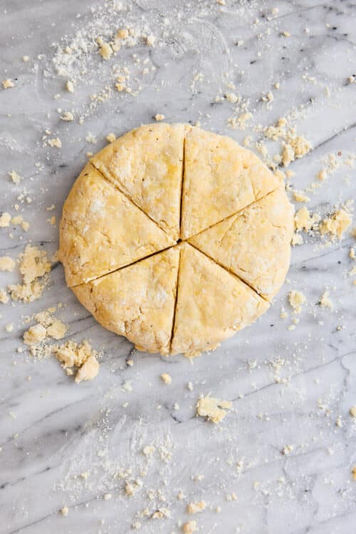 - Working on a lightly floured surface, divide dough into 6 equal pieces.
