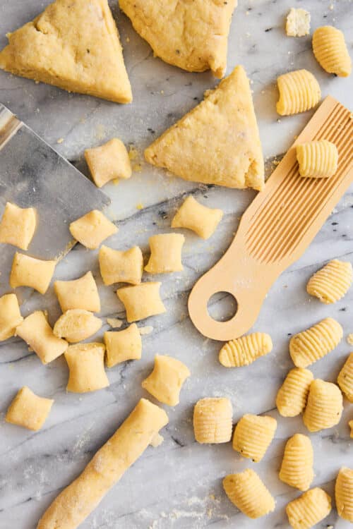 A gnocchi board is completely optional to create ridges for the sauce to cling onto. If a gnocchi board is not available, the back of a fork can also be used.