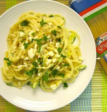 Spaghetti Alfredo with Zucchini Ribbons