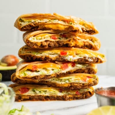 Heat 1 tablespoon olive oil in a large cast iron skillet over medium high heat. Add ground beef and cook until beef has browned, about 3-5 minutes, making sure to crumble the beef as it cooks; stir in taco seasoning. Drain excess fat; set aside.